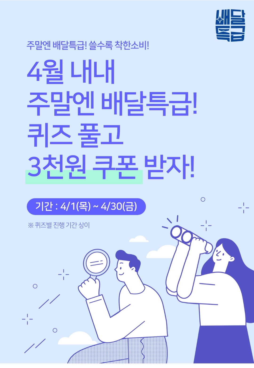 4월 1일~4월 30일 주말엔 퀴즈풀고 3천원 쿠폰을 주는 행사중!!!